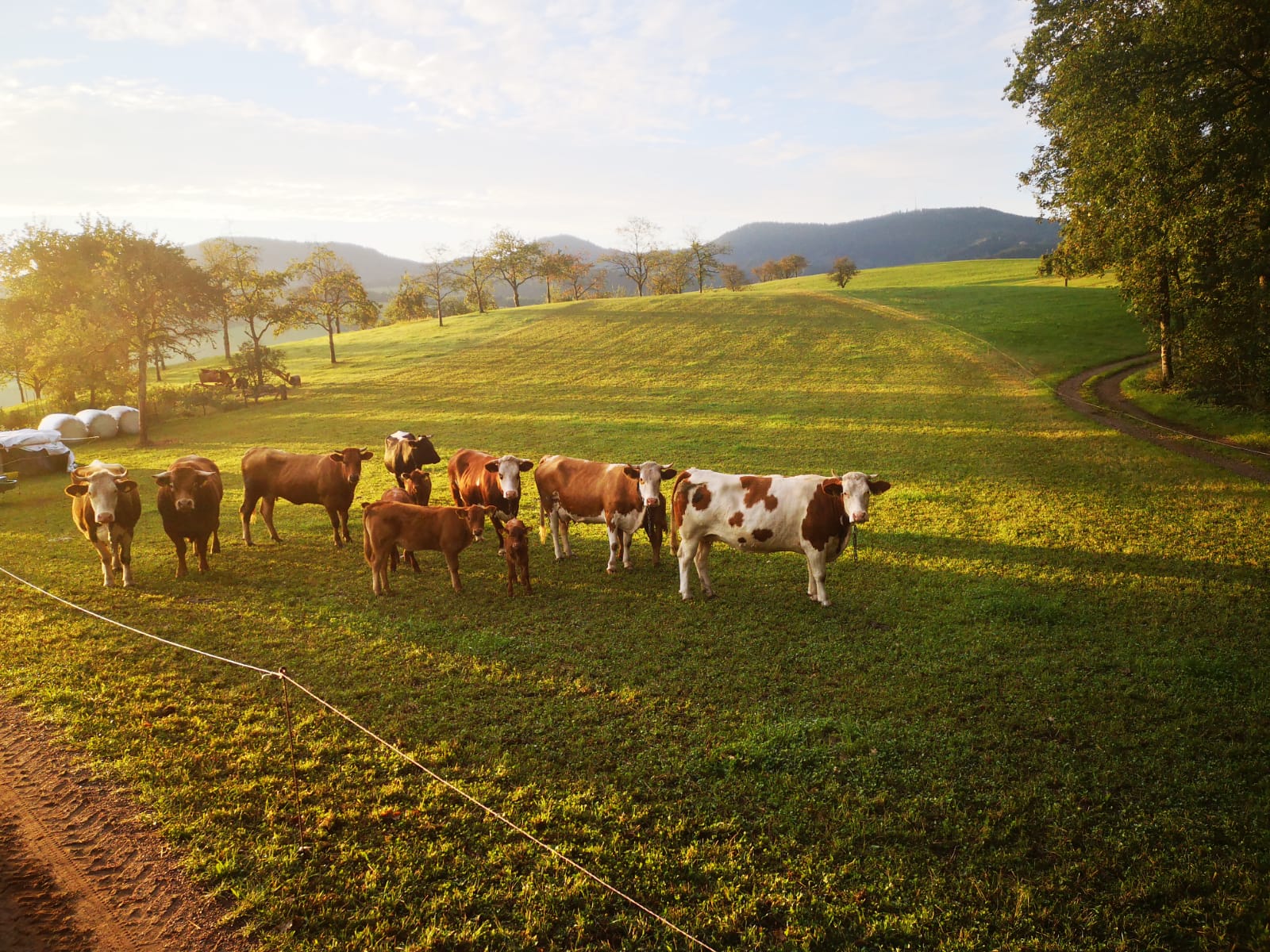 Das Fleisch welches für die Wurst verarbeitet wird, stammt von unseren auf dem Hof gehaltenen Schweinen und Rindern welche bei uns im Sommer über auf der Weide grasen und im Winter den warmen Stall genießen.